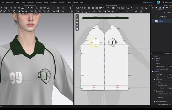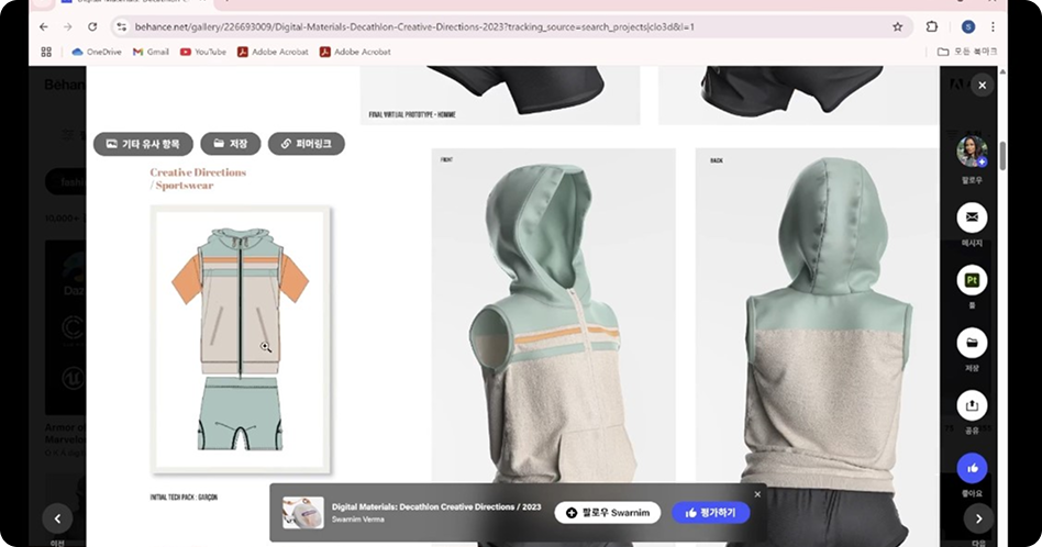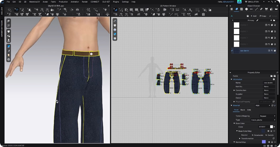 CLO 결과물의 핏과 질감,